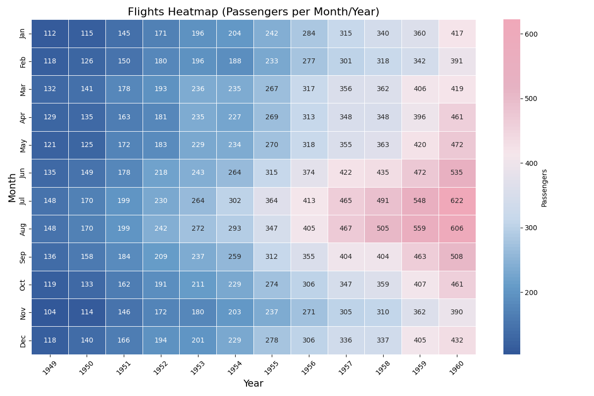 flights_pivot = flights.pivot(index="month", columns="year", values="passengers")